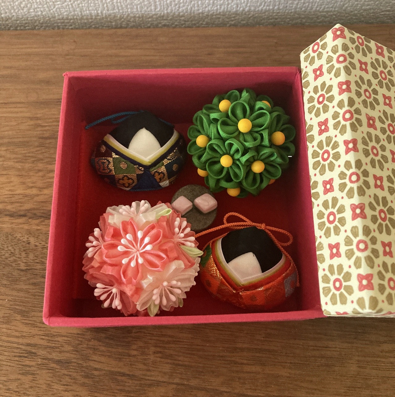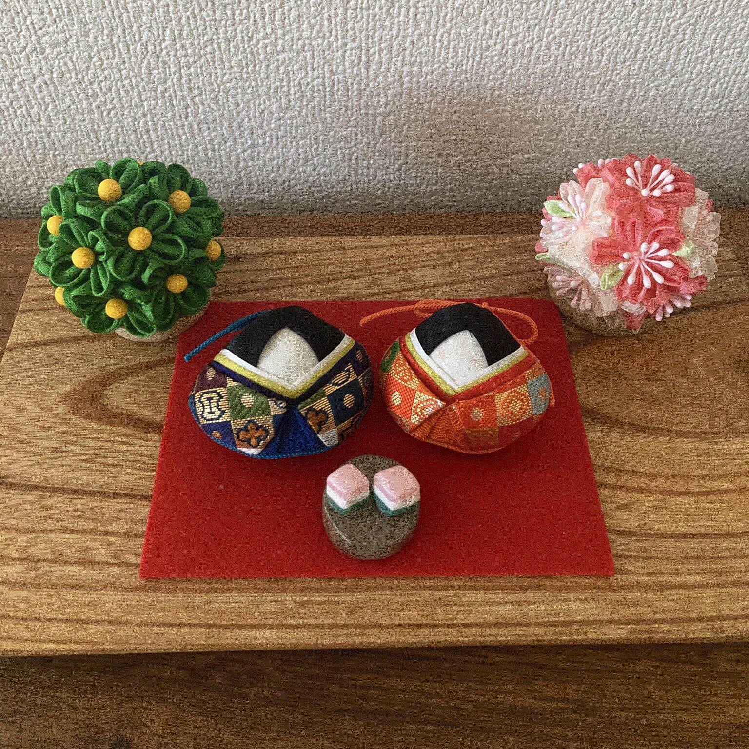 商品内容(お内裏様、お雛様、毛氈、桜橘、ひし餅)